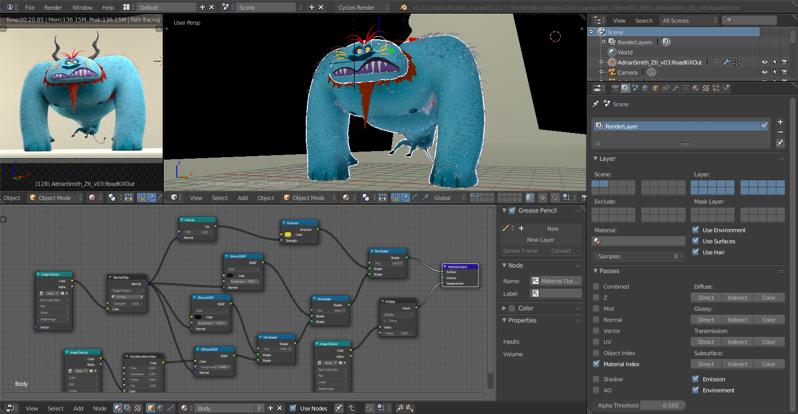 Modeling,Texturing,Shading.Fur,Lighting done in Blender